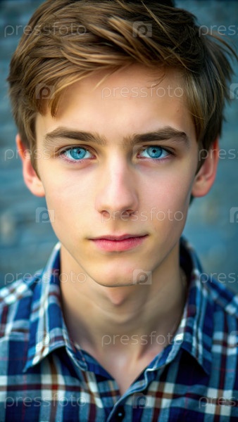 Молодой человек в простой рубашке с голубыми глазами Генерирующий ИИ