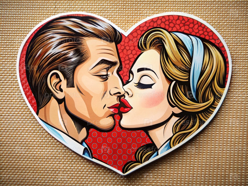 Наклейка в форме сердца с мужчиной, целующим женщину Генерирующий ИИ