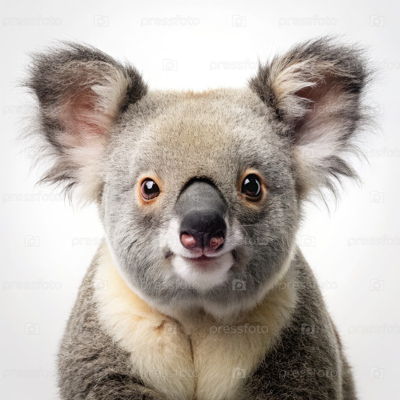 Закрыть коалу на белом фоне. Генерирующий ИИ