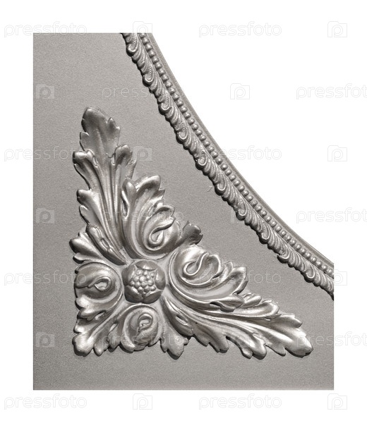 Серебряный декоративный элемент с цветочным рисунком, выделенным на белом фоне