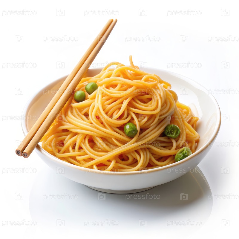 Чаша лапши с горохом и палочками. Генерирующий ИИ