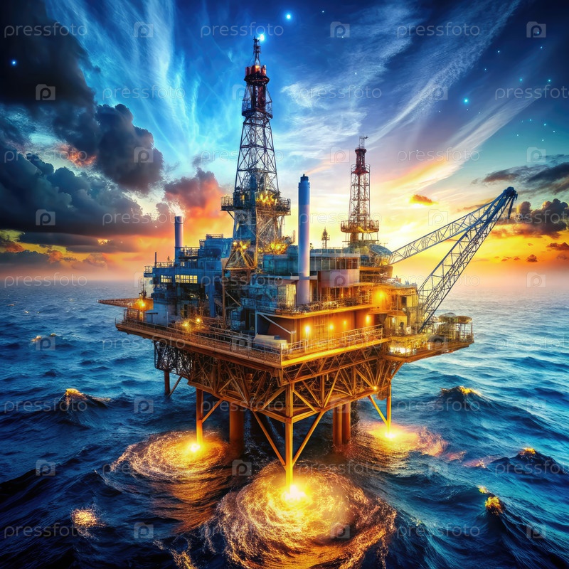 Нефтяной Риг посреди океана. Генерирующий ИИ