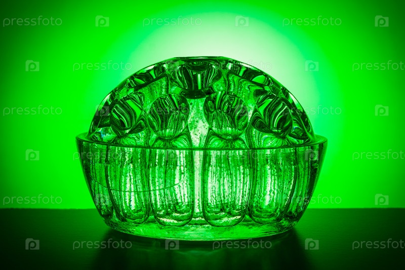 Декоративная полукруглая стеклянная ваза на фоне зеленого градиента