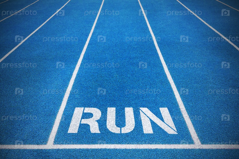Беговые дорожки с надписью «бегать» (концепция, прожектор)