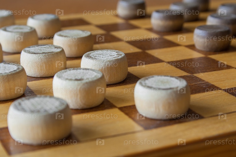 Деревянная шахматная доска с шашками, размещенными на столе (закрытие)