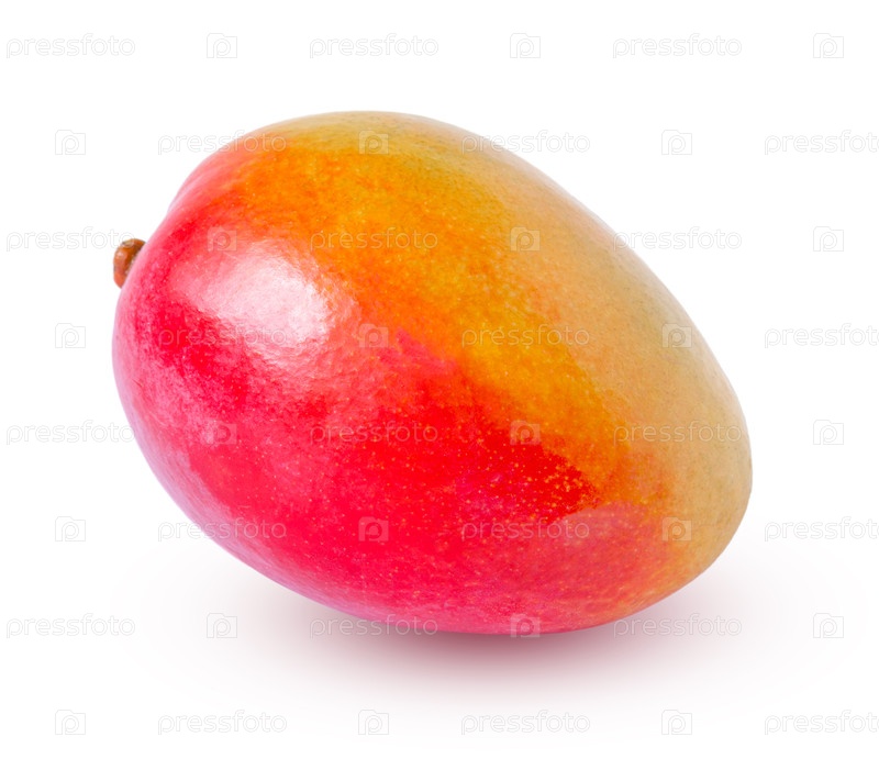 Красно-оранжевое манго с тенью, изолированной на белом фоне
