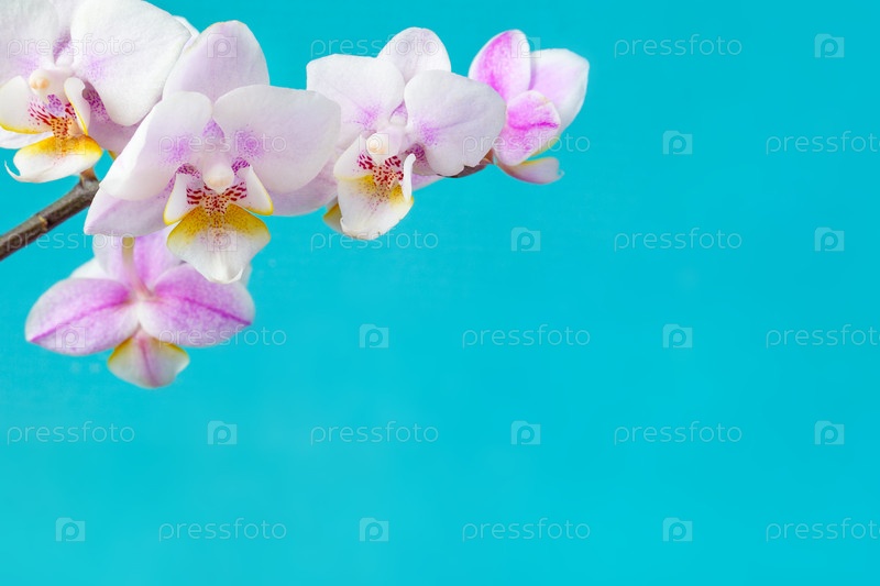 Розово-белый цветок орхидеи Phalaenopsis с пространством для копирования на бирюзовом фоне