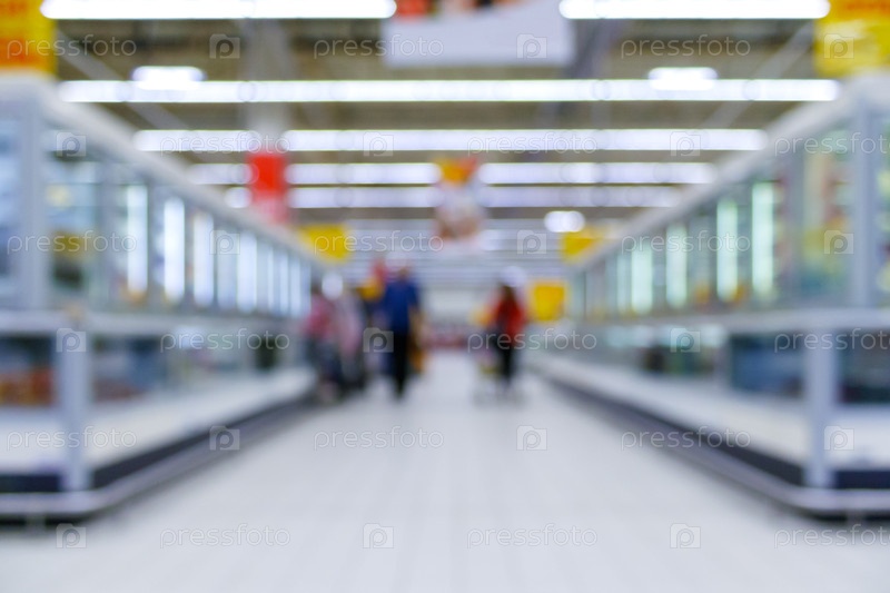 Размытый интерьер крупного супермаркета как фон