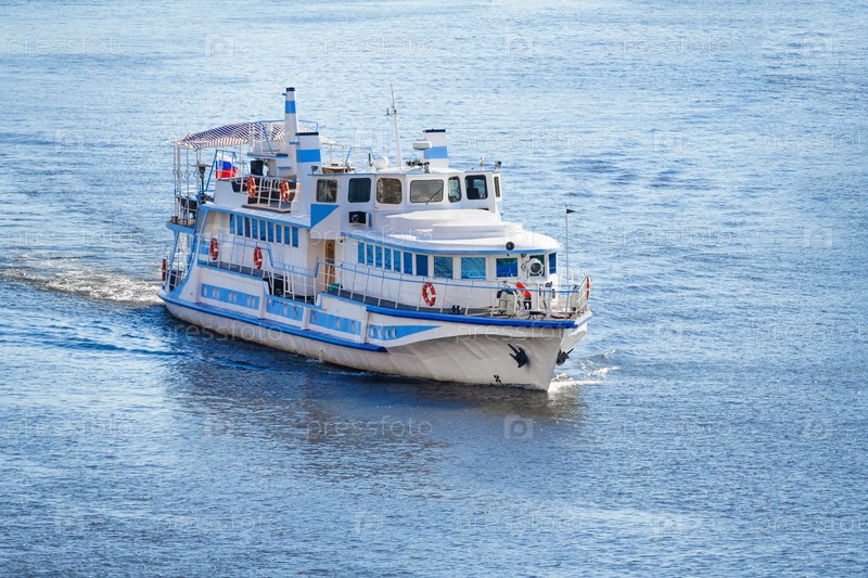Вид с воздуха на небольшой круизный лайнер на голубой воде