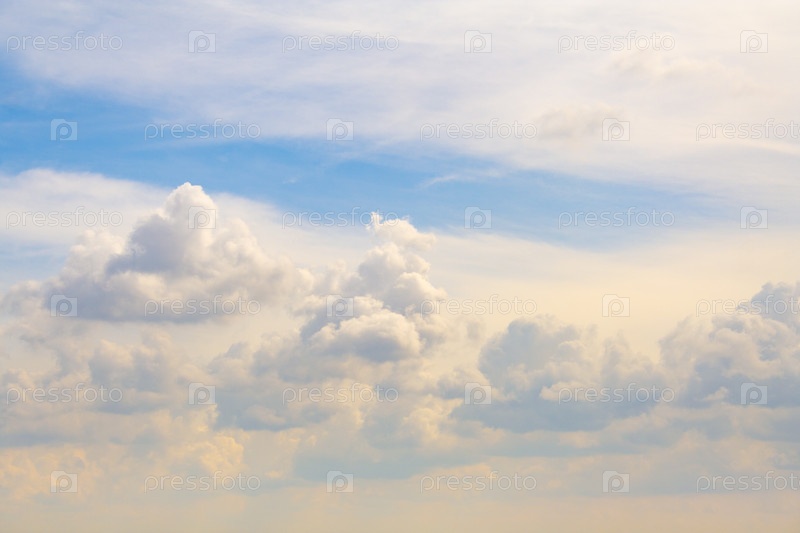 Пасмурное небо с пушистыми облаками как фон