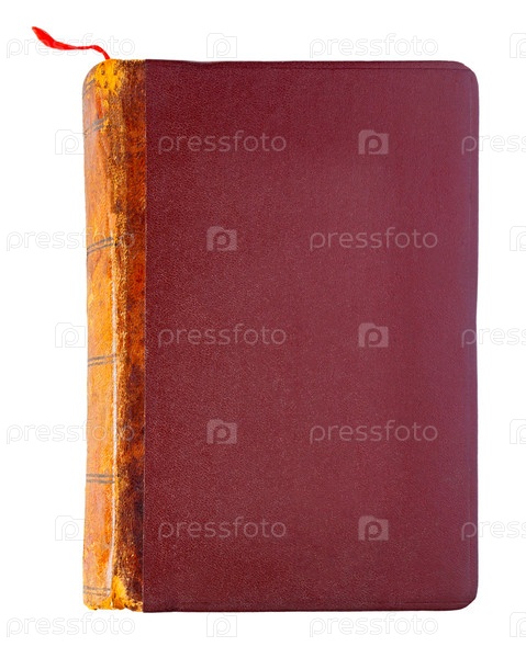 Винтажная закрытая коричневая книга с красной закладкой, изолированной на белом фоне