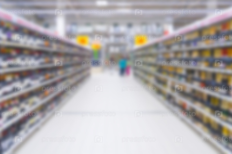 Перспективный взгляд на алкогольные напитки на полках супермаркета в качестве фона