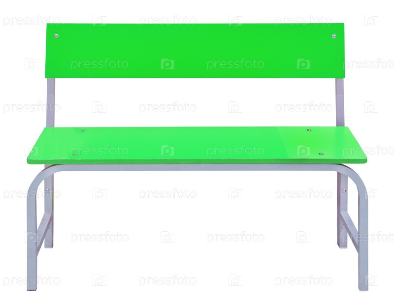Зеленая пластиковая скамейка с металлическими ножками для интерьера изолирована на белом фоне