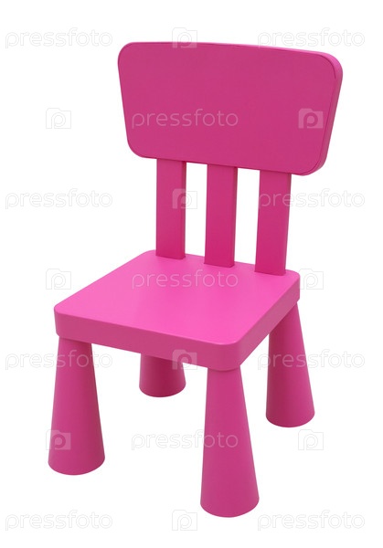 Маленький розовый детский пластиковый стул изолирован на белом фоне