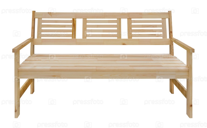 Вид спереди длинной деревянной скамейки с спинкой, изолированной на белом фоне (элемент дизайна)