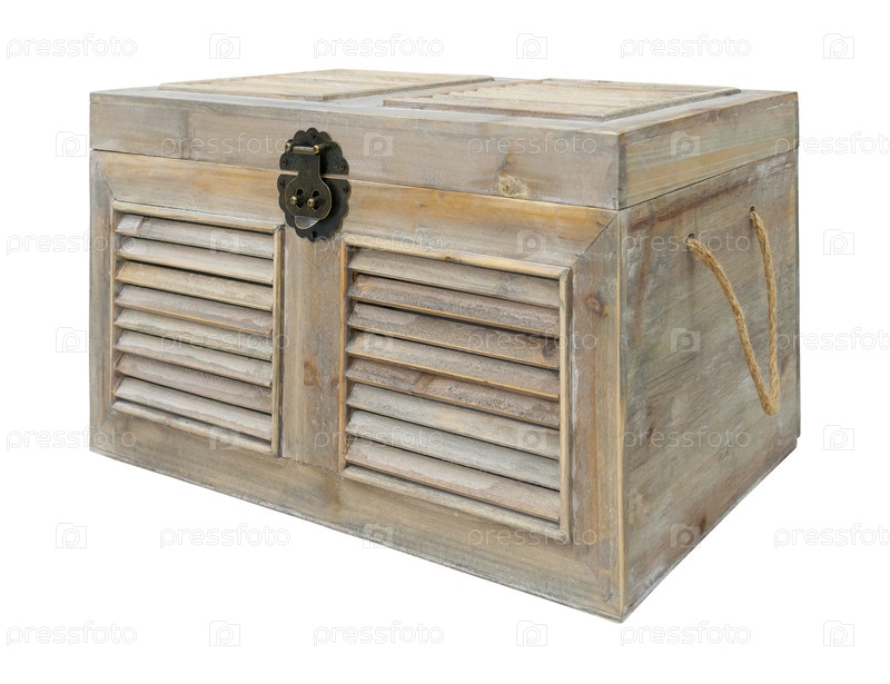 Деревянный сундук с металлическим замком, изолированный на белом фоне