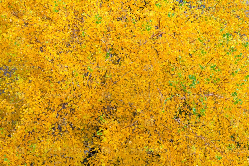 Верхний вид желтой осенней листвы на деревьях как фон, текстура
