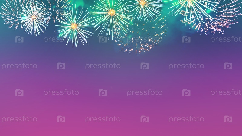 Фейерверки отображают цветы на фиолетовом фоне неба с копирайтом