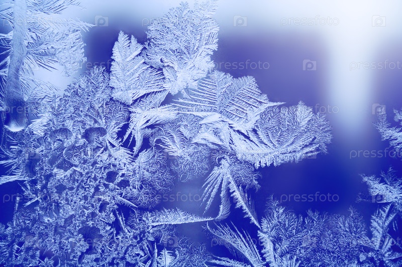 Морозный узор на стеклянном окне. Аннотация, фон, текстура