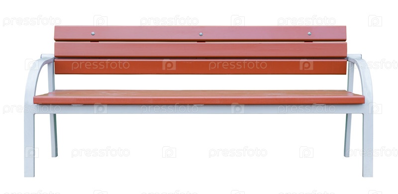 Коричневая деревянная скамейка с белыми металлическими ножками. изолированный