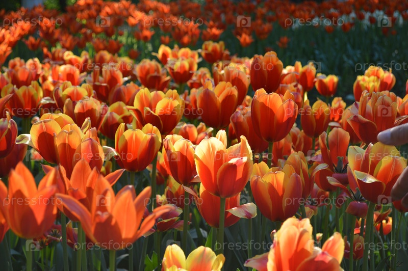 Поле оранжевых тюльпанов