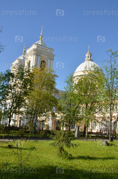 Троицкий собор – главный храм Александро-Невской лавры в Санкт-Петербурге в солнечный весенний день