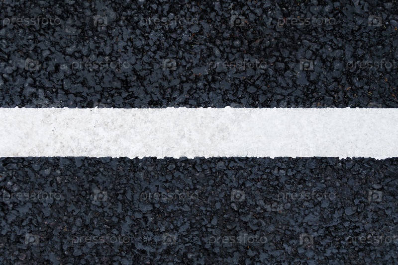 Горизонтальная белая линия разметки на асфальтовой дороге (фон, текстура, абстракция)