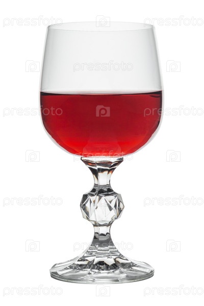 Кристаллический стакан красного вина с утолщением на стебле, выделенном на белом фоне