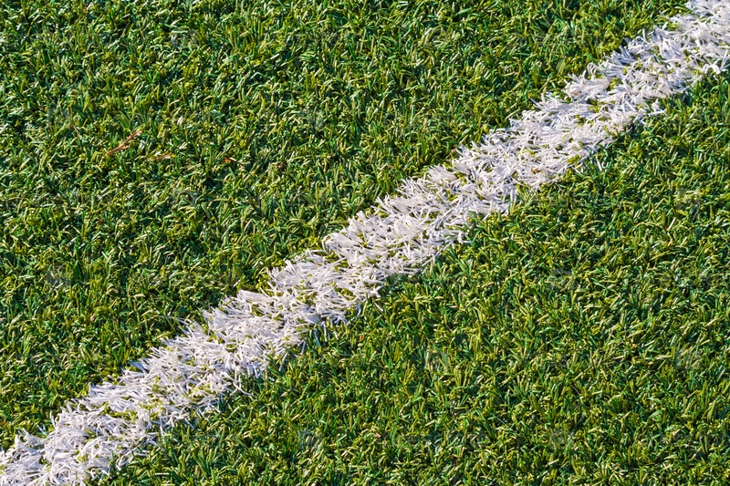 Спортивное поле с искусственной травой и белой маркировкой
