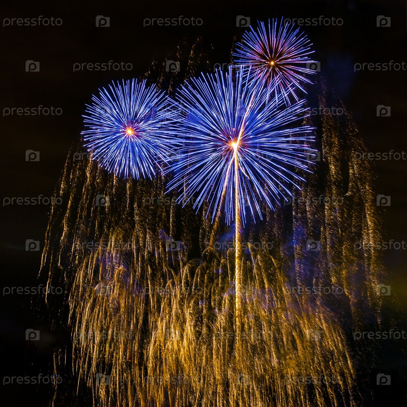 Фейерверк отображается на темном фоне неба
