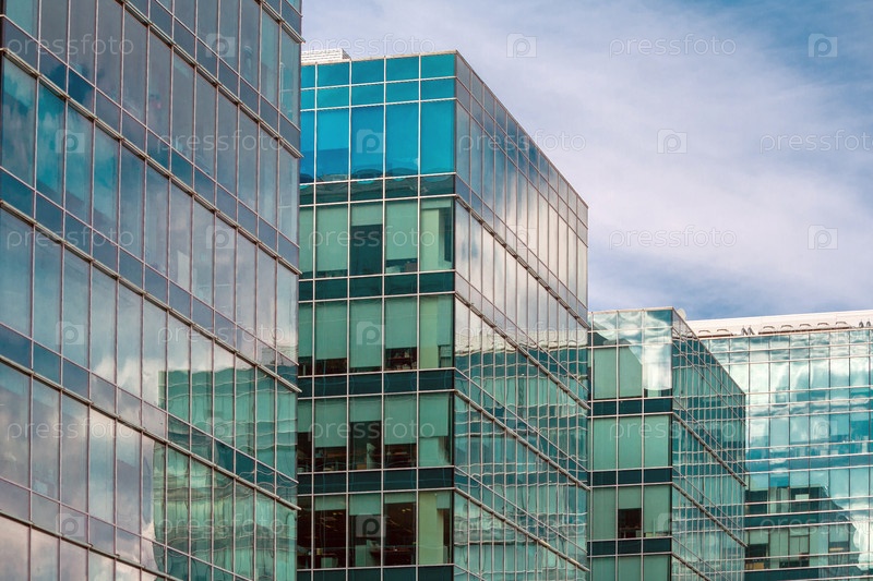 Абстрактный фрагмент современной архитектуры, стены из стекла и бетона
