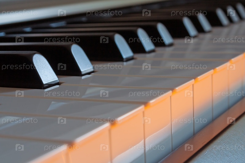 Фортепианные клавиши вид сбоку с теплым светом