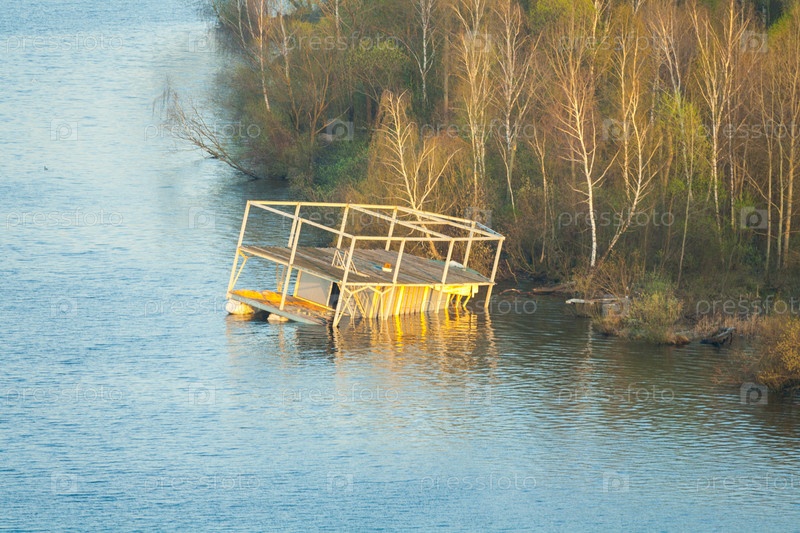 Разрушенное здание наполовину погружено в воду