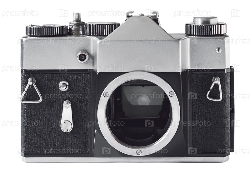 Винтажная однообъективная рефлекторная камера без объектива, изолированного на белом фоне