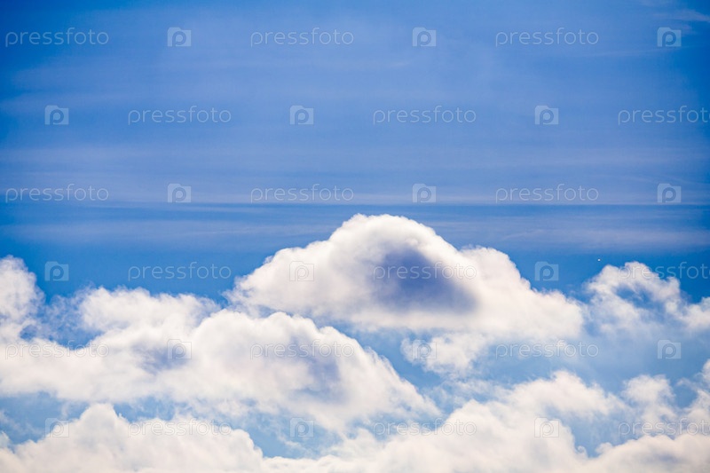 Белые пушистые облака в ярко-синем небе (фон, копия пространства)