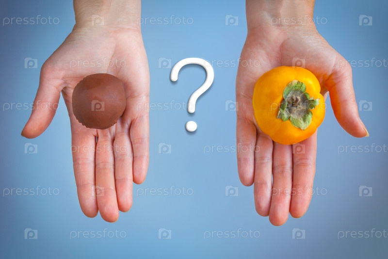 Выбор между шоколадным тортом и хурмой (концепция)