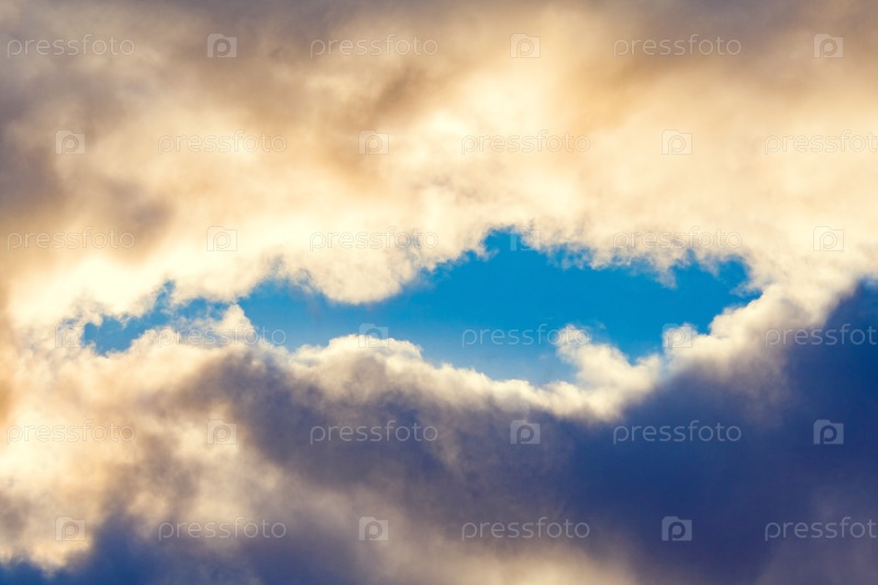 Золотые облака с синим люком в центре (фон, тонированный)