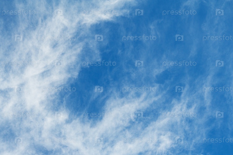 Белые перьевые облака на ярко-синем небе (фон)