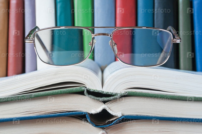 На открытых книгах лежат очки (концепция)