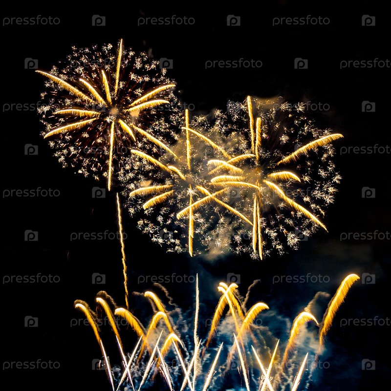 Красивый золотой фейерверк на темном фоне неба