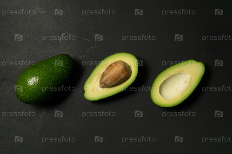 Свежий, сырой авокадо нарезан на черном