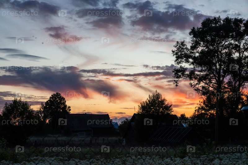 Невероятно красивый, красочный закат в вечернем небе