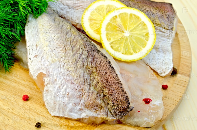 Филе трески на круглой доске с лимоном