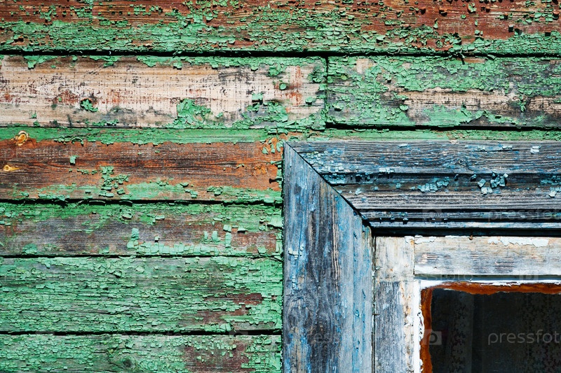 Старые окрашенные деревянные настенные доски с фрагментом оконной рамы (текст, фон)