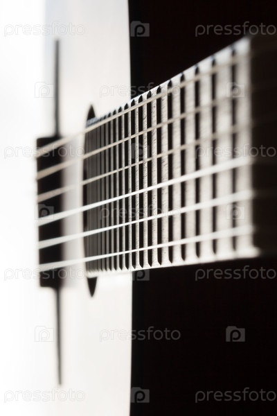 Классический гитарный крупным планом с небольшой глубиной резкости