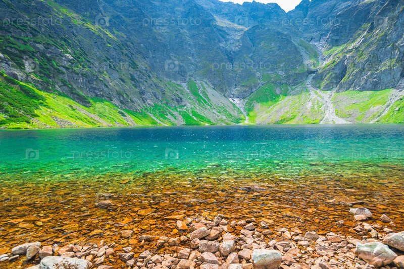 Прозрачная вода чистого горного озера Чарны-Став расположена на большой высоте