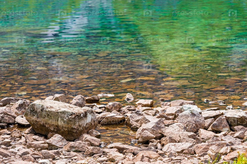Берег горного озера - крупным планом камни и вода