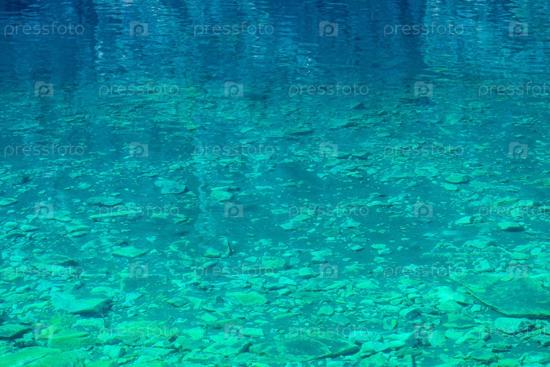 Прозрачная вода горного озера, вид на скалистое дно