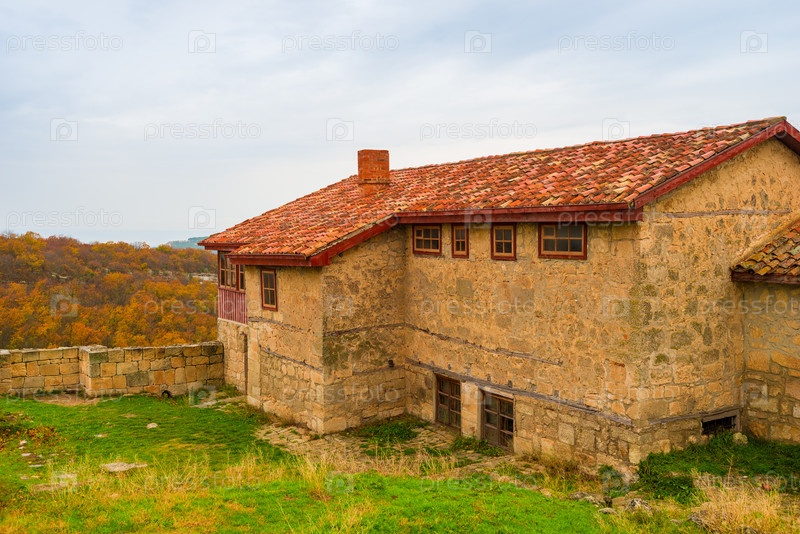 Каменный дом на горе в пещерном городке Чуфут-Кале в Крыму, Россия
