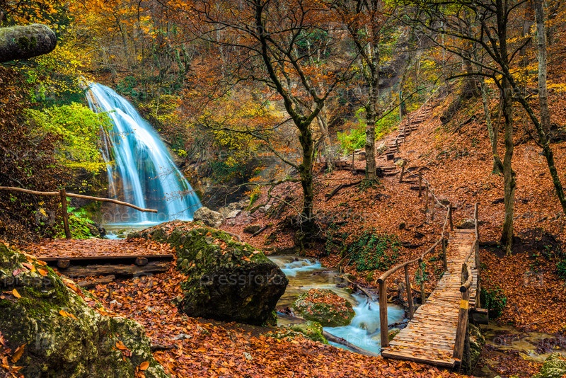 Осенний пейзаж, красивые достопримечательности Юр-Юр водопад в горах